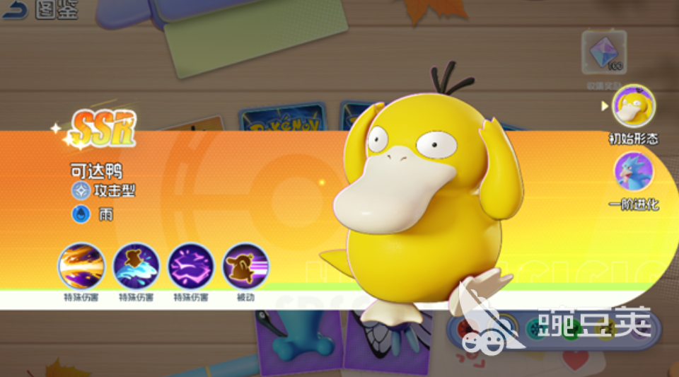 该阵容在实战中呈现清晰分工:可达鸭与巴大蝶承担主要法术输出任务,凭借雨系加成强化水系技能威力;巨钳螳螂凭借高基础速度确保首回合行动权,配合雨天环境提升命中率与连击流畅度;小卡比兽站位前排,依靠高额HP与物理防御吸收大量伤害,并通过被动技能为全队施加护盾;果然翁则作为后手反制核心,在承受攻击的同时触发反弹效果,干扰敌方节奏并延长己方生存窗口。