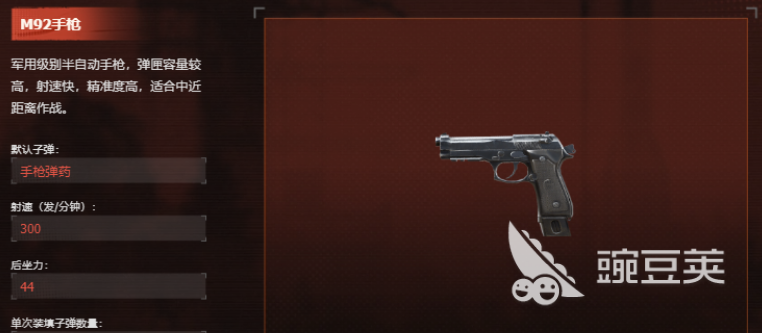 M92手枪在游戏中是一把半自动手枪,手枪的有着比较高的弹匣容量,设计的速度也非常的快,可以对敌人进行连发射击,比较适合在近距离的战斗中使用。