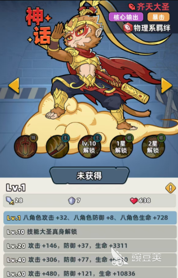 齐天大圣在物理角色中属于主要负责打伤害的那一类角色,他的大部分输出都和暴击有关。战斗的时候他每一次普通攻击都有四分之一的机会,能触发如意金箍棒的效果,这里的如意金箍棒并不是装备,而是一种攻击方式。触发之后会对主要目标造成比较高的物理伤害,同时还会波及旁边的两个敌人,让他们也受到一定的伤害。