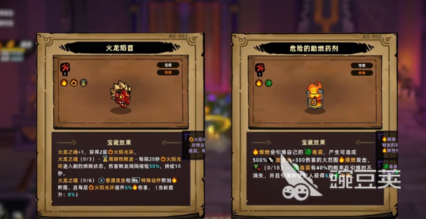 宝藏选择也会直接决定打法的强度,核心就是围绕燃爆伤害,还有火龙之魂,起码要收集6个火龙之魂。这才是触发的关键,在传奇宝藏方面可以获得馄饨之钥,解锁5个选择。其中火龙焰手还有危险的助燃剂是必须要选择的,一个可以带来两层火焰光环,一个就可以作为燃爆流的核心,在产生毒物之后,一瞬间就会燃爆,造成爆发性的伤害。剩余的三个传奇宝藏可以选择诡异的眼镜,时光沙漏,吞噬之刃。