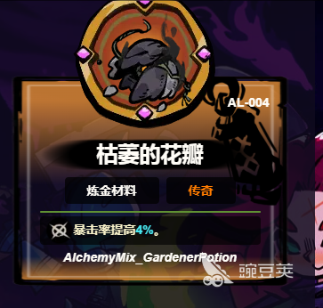 脆弱的枯萎的花瓣:不要看好像没什么作用,但实际上就会拥有一种魔力,可以让玩家的暴击率提升4%。在面对高攻速的武器时,这4%的提升,就能有效避免更多的伤害,就算面对重甲骑士,也无需过于的担心。关键是他并没有花哨的触发条件,只是安静的藏在装备栏中,在关键的时刻就可以给敌人致命的一击。
