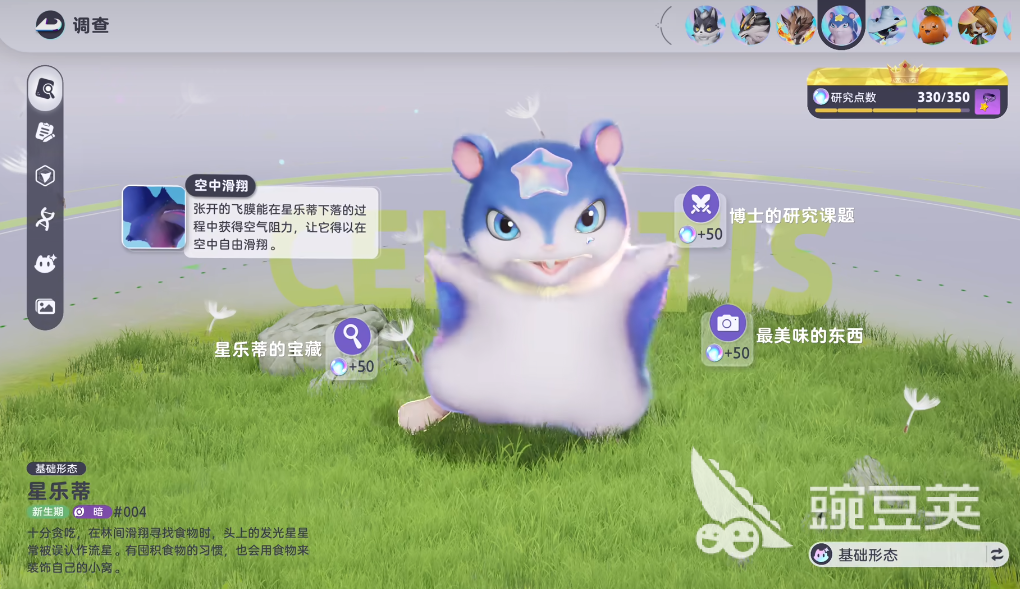 星乐蒂是一个非常可爱的小飞鼠,常规状态下它会以老鼠的形象出现,随着后期的成长,角色能进化成魔法师,作为暗属性的角色,在游戏里能克制光属性成员,同时也能在游戏里以较远的距离输出,挑战过程中想要快速探索场景的话,玩家就可以借助这个宠物的飞行技能,从高处向下快速穿梭飞行,能在较短的时间内到达自己想要的地点,有一些特定的解谜关卡中,就需要借助飞行能力快速通关。