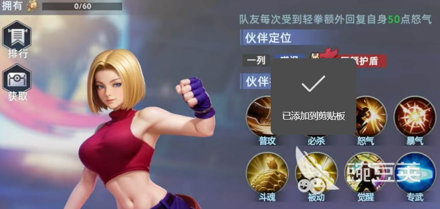布鲁玛丽的稀有度是SSR级别,属于防御型的角色。她有个被动技能特别实用,队伍里的其他角色。每次打出侵权攻击时,她都能额外恢复50点怒气值。这个设计,让她在战斗中能更快积攒怒气,从而更频繁地释放技能。她的爆气机制是,当自己生命值,掉到50%以下的时候触发,触发后,能立刻恢复200点杀气,同时还会获得一个,相当于自己20%最大生命值的护盾。这个机制在危急时刻能保住她的命,让她继续在场上发挥作用。