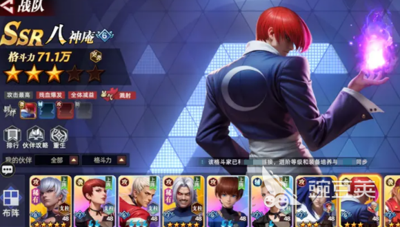 从角色类型来看,PVP阵容需要有针对性。攻击型角色当然要有,但不能全是范围伤害的,因为竞技场里,更讲究集火秒人。像八神庵这种单体爆发高的,突袭型角色就很适合,开局直接盯着对面脆皮打,能快速减员。草薙京虽然也是攻击型,但他的范围技能,在PVP里效果没那么明显,伤害分散了,反而杀不掉人。