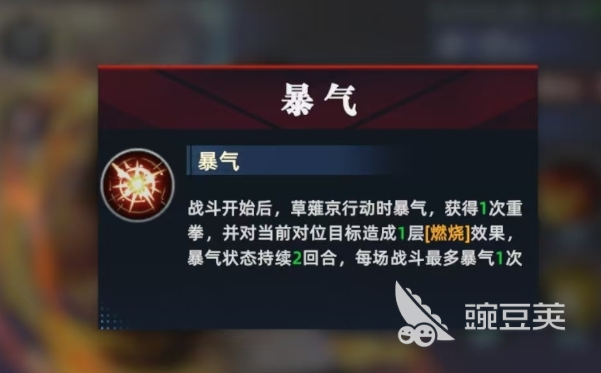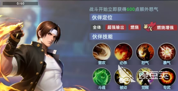 草薙京这就是强攻型的输出核心,是一个群攻的天花板。在团战中就可以解决场面僵持的问题,他的技能在针对敌方全体时就可以直接造成高额的伤害。一波就能将对方整体的血线直接压下去,更关键的就是燃烧的效果,一旦挂到敌人身上之后,那后续的每一个回合都会持续的掉血,慢慢磨掉敌方的血量还有战斗力。可以给后续收割创造出绝佳的条件,无论是推图还是竞技,这种持续的群体压制力还是比较实用的。