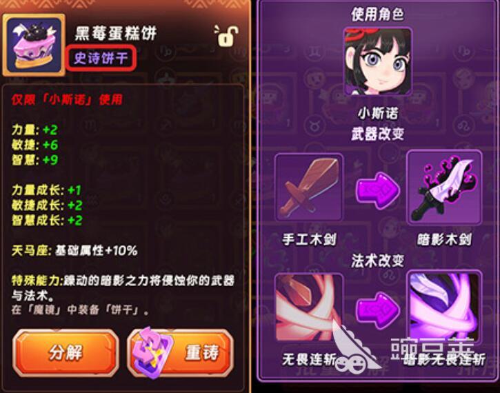 在汉克旅店游戏当中涉及到的饼干种类比较多,比如猫饼。这个作为一个圆滚滚的猫脸造型,额外还会涉及到黑莓蛋糕饼,比较精致。其实在整个游戏当中,所涉及到的每个饼干都有明确的养成价值。如果是基础饼干,它能够有效地提供力量、敏捷、智慧等等属性加成,当然饼干的品质越高,增益的效果也就越明显。毕竟在整个游戏当中所涉及到的饼干共分为5个等级,其中史诗级以上品质的饼干,除了能够拥有基础的属性之外,它其实还会带有专属的特效。
