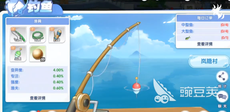 玩家如果想要完成每日订单任务,显然就需要了解风之国世界钓鱼怎么玩。钓鱼的入口在什么地方呢?就在左下角,玩家可以来碰一下自己的运气,当然在碰运气之前也要看一下自己的渔具属性。要是开局就钓到了巨岩海龟,别忘记要和其他的好友分享一下。
