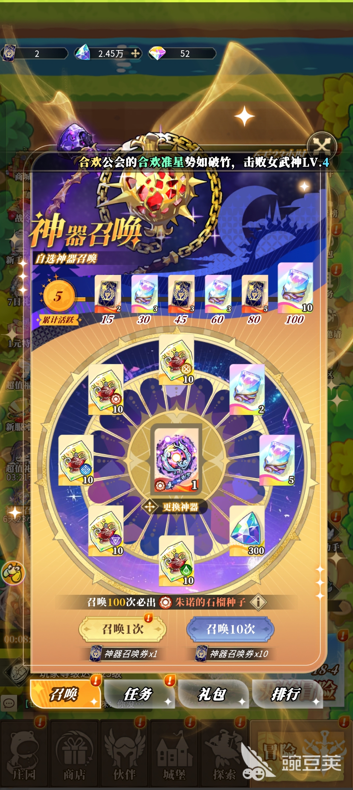 在神器的获取途径方面,玩家可以在游戏的商城当中直接购置,因为游戏里面为玩家提供了不同等次的神器礼包,玩家就可以购置,以便尽快得到神器,还可以提高游戏的活跃度来获取,比如每日登录领取奖励,或者参与游戏任务来收集等等,也可以通过卡池抽取,不过抽取的概率可能相对来说会较低一点,如果是新手的话抽取的概率就会捎高,玩家还可以参加副本任务从宝箱里获得。