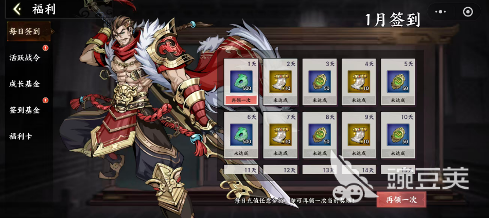 比如前期的限时特惠,还有限定天命等等奖励当中大家都无法获取,因为这都是当前进行充值才能拿到的奖励,而如果大家想要在这里直接体验一些平民玩法的话,那么一定要领的就是在线奖励,还有福利系统当中的每月签到,这里每日签到的话,通过当天的领取是可以拿到各种不同道具的,福利页面里面,大家可以看到当前的活跃战令,里面也是有相应的活动奖励,因为在活动周期里面,大家获取的战力点越多的情况下,可以解锁的奖励就越好。