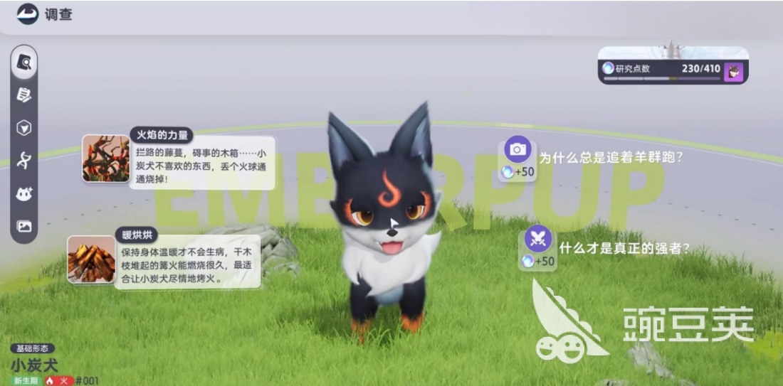 小碳犬在开局的区域就能抓到,别看它不起眼,实际用处挺大的。平时可以用它来点篝火,或者烧掉那些盖在宝箱上的荆棘。后续还能进化成焚火狼或者狼斗士,最终形态狼斗士在前中期,算是相当能打的火系角色了。它的蓄力攻击爆发很高,用来清理成群的小怪特别顺手,实用性摆在那里。