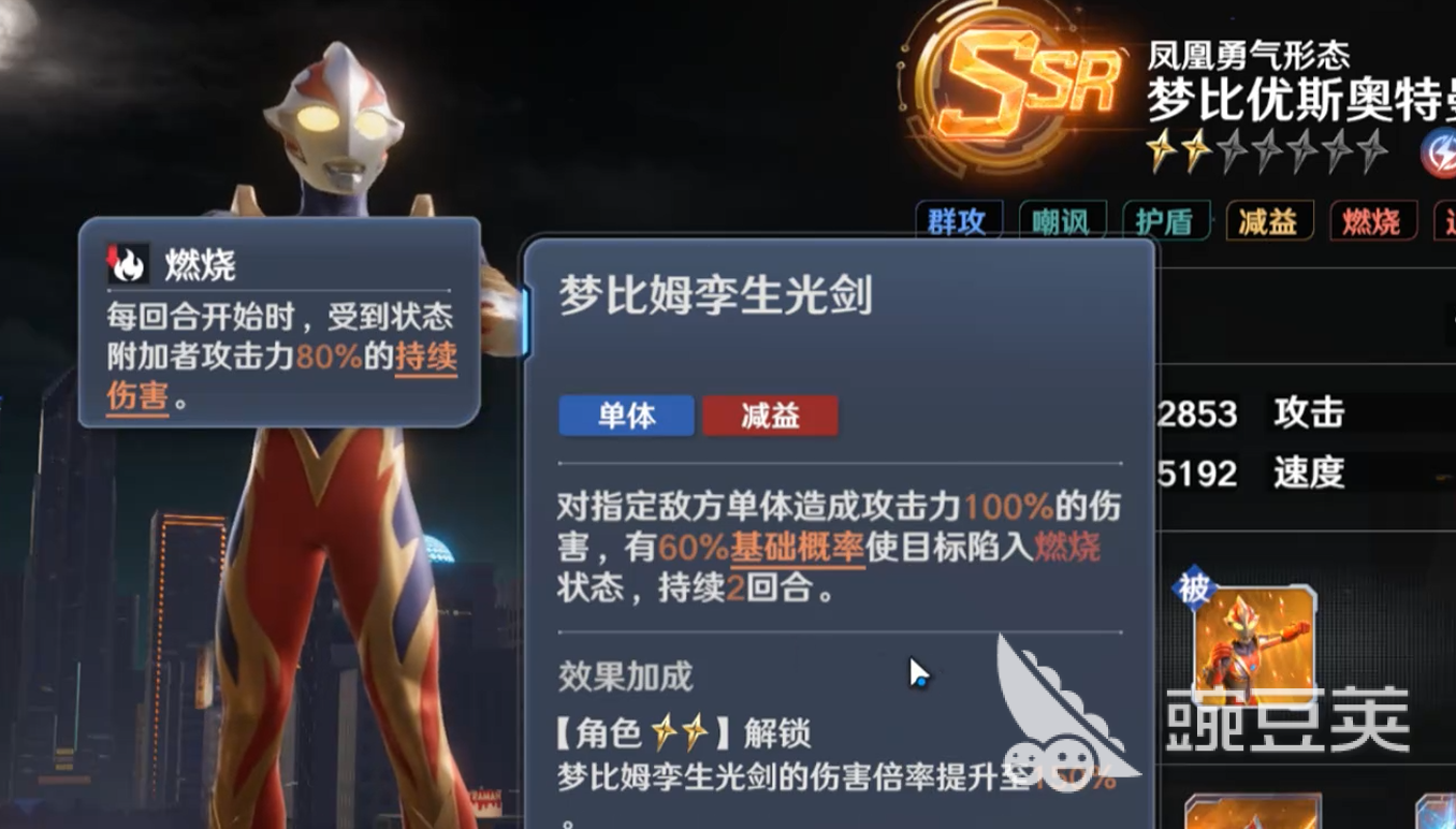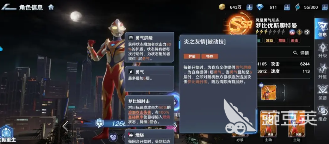 奥特曼光之战士凤凰勇者角色的核心技能机制来源于一套把灼烧状态和全队增益完美融合起来的战斗体系。实战中凤凰勇者的定位实现了血量、防御和攻击三者的完美平衡,是战场上的多面手。必杀技梦比姆骑士射线不仅会对单体目标造成巨大伤害,在角色达到七星以后还会发生质变,使目标进入凤凰标记状态。这种将个人输出与全队暴伤提升深度绑定,使该角色在面对高难度BOSS的时候具有极高的战术权重,从而可以通过标记系统实现伤害的爆发式飞跃。