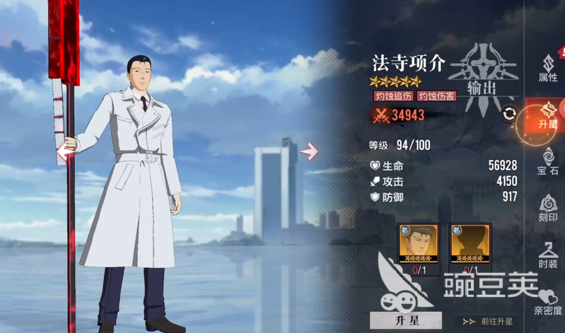 第二个为大家介绍的角色叫做法寺项介,他当前如果在游戏当中使用,建议是可以放在副输出的位置上面使用,因为法寺项介各种带来的持续能力当中有灼烧状态,可以继续施加的同时还可以根据技能模组来快速进行多次追杀,那么周围敌人根据他这样的能力带来的持续输出都是比较高的,而且按照法寺项介当前能力,根据不同回合里面叠加起来的状态层数多少,后期在伤害提升起来之后,他能够带来的整体伤害数值也会让燃烧队伍带来的能力更高一些,所以当前如果要组建燃烧队伍的话,法寺项介绝对是在其中要培养的一个角色,毕竟他作为五星角色的输出,在当前培养的成本上面还算是比较低的。
