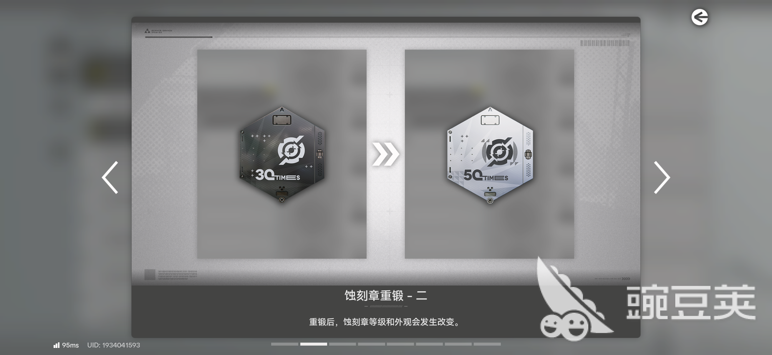 蚀刻章支持深度个性化管理:玩家可对已拥有蚀刻章执行“重锻”操作,改变其基础纹样结构;亦可选择“镀色”,在预设的七种主题色系中切换外观色调。重锻与镀色不消耗源石技艺材料,仅需消耗通用资源“蚀刻粉尘”,且无次数限制。调整后的蚀刻章将实时同步至“光荣之路”首页展示区,支持自由拖拽排序,构建专属荣誉陈列空间。
