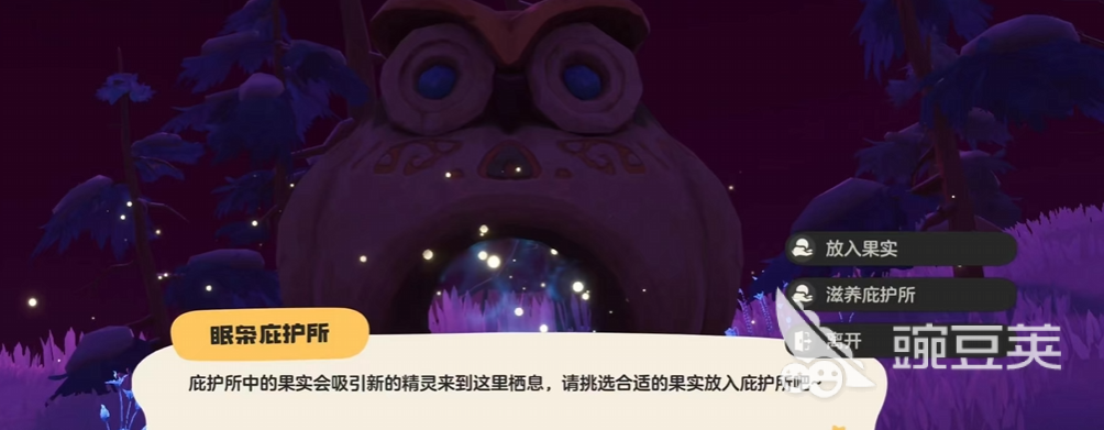 第一种方式:启用滋养庇护所机制。该功能需角色等级达到40级后方可解锁。当玩家前往猫头鹰处放置果实时,界面将新增“滋养庇护所”选项。通过该功能可对眠枭庇护所进行升级,从而显著提升对应精灵的闪光触发率。需注意,不同庇护所仅支持特定种类的果实,使用匹配果实能进一步放大闪光产出效率。