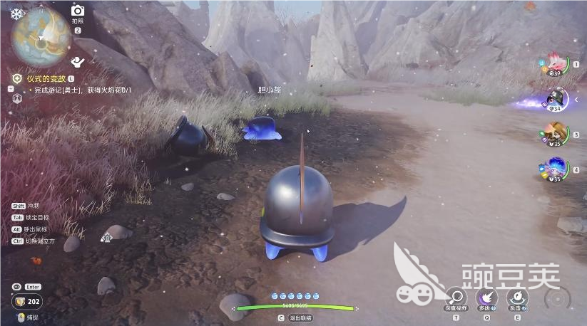 抵达中央祭坛区域后,场景中将出现一块持续泛光的石质结构。玩家需操控胆小盔靠近该物体,随后释放“击落”技能进行精准打击。成功命中后,石块碎裂并激活隐藏剧情节点,勇气之剑实体随即显现于祭坛中央。