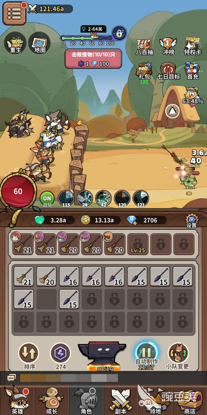 新手需重点掌握三大支柱系统:自动挂机、战术编队与卡牌合成。挂机系统支持全程后台运行,角色自动刷图、采集素材、合成低阶弓箭,回归时可一键领取多层累积奖励,显著提升战力成长效率。该设计大幅降低时间投入门槛,兼顾休闲性与养成深度。