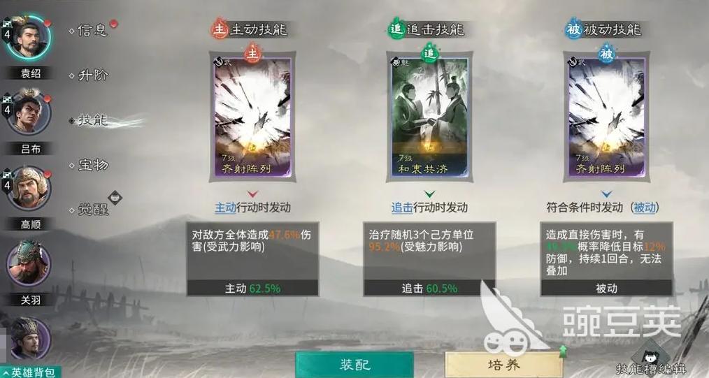 该组合采用“双前排承伤+后排持续输出+召唤物协同压制”的三层结构。袁绍不担任主攻手,而是作为战术支点,通过召唤单位构建战场控制网;吕布承担终结职责,依赖斩杀机制收割残血目标;高顺则锚定前排,以陷阵勇士分摊伤害并提升全队格挡率,显著增强队伍抗压能力。
