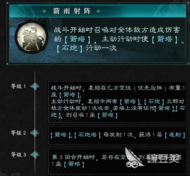 在《三国天下归心》这款策略卡牌手游中,袁绍凭借“四世三公”的背景与独特召唤机制,成为中后期极具战术价值的体系核心。其技能可稳定生成箭塔与石炮,形成持续范围压制与多段控制,尤其适配以消耗、拉锯和阵地战为核心的阵容构建。本文将围绕“袁绍召唤流”展开深度解析,涵盖阵容搭配逻辑、武将职能分工、布阵细节、兵种协同及技能配置要点,助玩家高效成型高容错率的召唤体系。