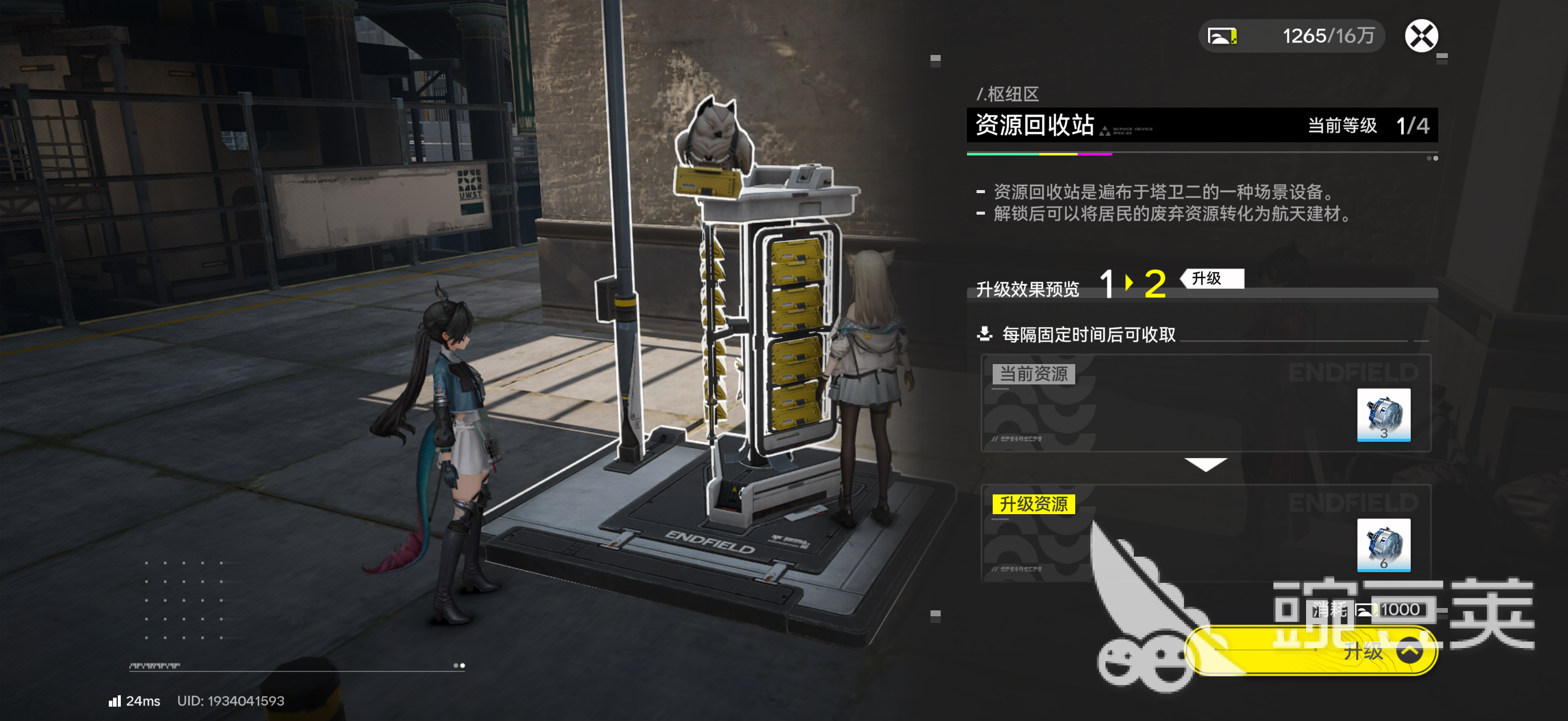 在《明日方舟:终末地》中,工业系统上线后,玩家将频繁产出各类资源,包括基础建材、精密零件、稀有合金等。随着生产节奏加快,资源积压与背包容量不足的矛盾日益突出。为高效管理冗余物资,游戏内设置了“资源回收站”功能——它并非简单的销毁入口,而是将低阶/过剩资源定向转化为帝江号升级所需的关键材料的核心枢纽。