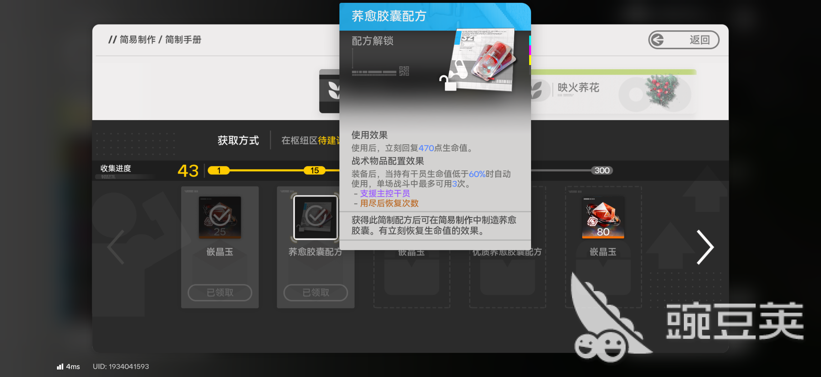 配方解锁后,玩家可立即启用“简易制作”功能。此方式仅需消耗固定数量荞花,即可在数秒内生成单批荞愈胶囊。优势在于操作门槛极低、响应迅速,适合应对突发战斗损耗;但单次产出量有限,且频繁制作易占用背包空间,长期使用将影响资源管理效率。