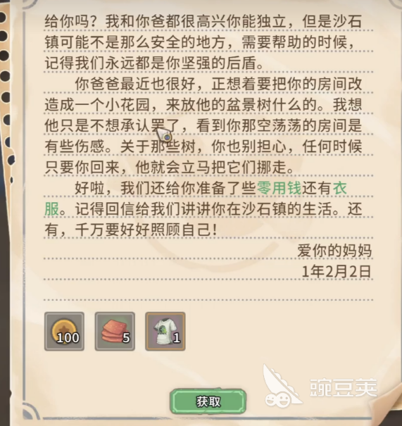 这个信件是来自于游戏玩家的母亲大人所发送的,他在这个信件里面叙述了一些美妙的记忆和勉励的话语,玩家可以进行回复,表露自身的感受和分享自己有趣的故事,以便增进在游戏社区内的沟通交流,游戏这样的设定,不仅能够让游戏更多的具有真实感,而且还可以鼓舞玩家的探索激情,推动玩家不断的更新前进,在这款游戏里面,非常看重每个玩家内心的声音和参与的热度,经过如此的交通,能够更方便的领会玩家的需要,而且根据这些反馈来提高游戏的体验感,所以玩家在探究这个游戏世界时,和其他玩家交流时,每一段时刻都会被重视。