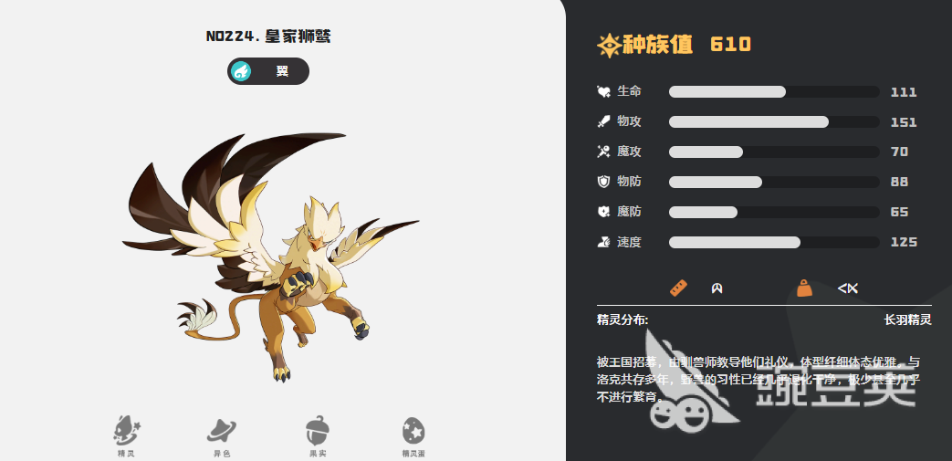 除了它之外皇家狮鹫也是非常重要的,它在其中可以带来的定点秒杀也是可以跟前面的翼王还有翼龙进行搭配,这里皇家狮鹫同样也是很多玩家都会用到的加速类型宠物,它自身的技能效果,打击面非常广的时候,速度也非常具有优势能力,而且后期可以用到的技能组当中利用疾风刺以及各种地刺能力,同样也是可以稳定的带来秒杀输出效果,打内战的时候可以增加足够的力量数值来打推图队的能力,配合翼龙的话,可以组成双系的叠加效果。