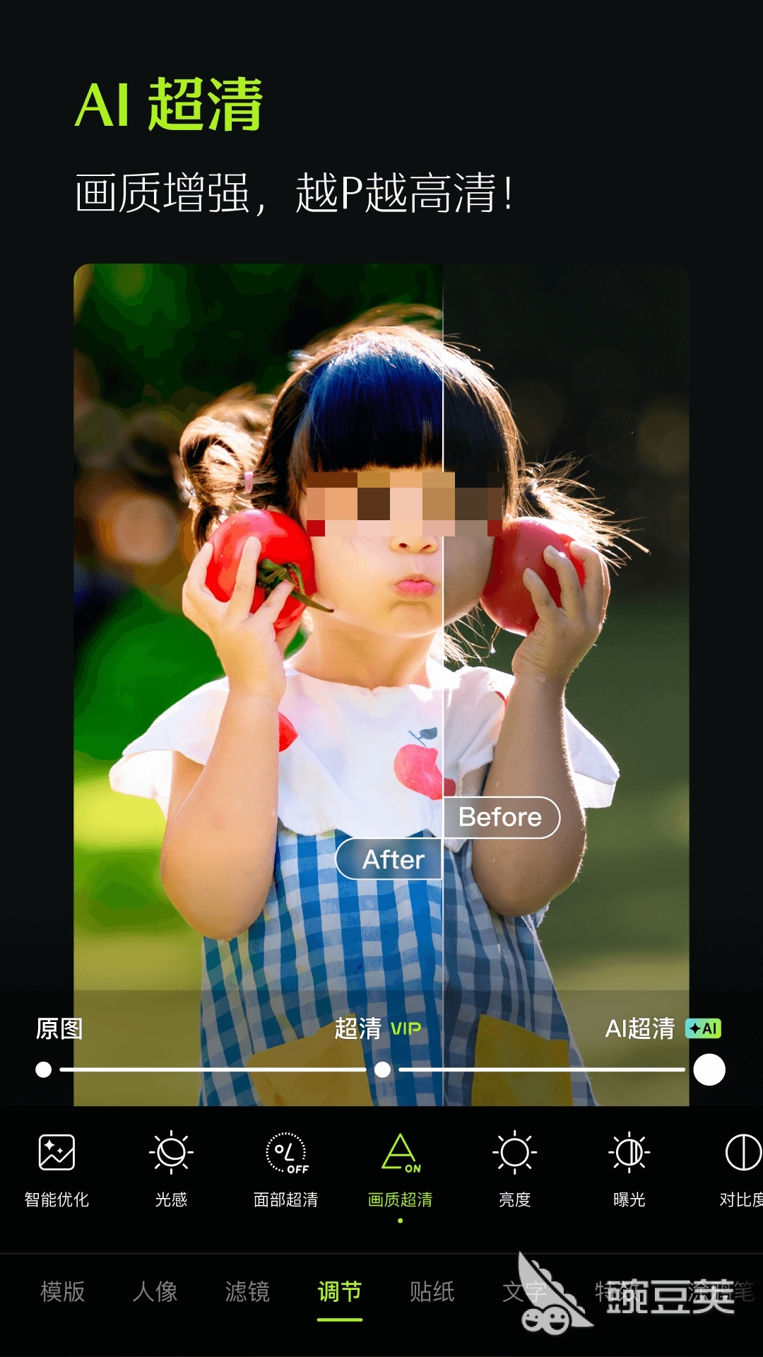 醒图很擅长调肤质、调五官立体感,修出真实又自然的原生美感。除了修人像特别顺手,它的修复功能也很实用,导入模糊或低像素的照片,用它这个功能处理一下,细节能补回来不少,整体清晰度提升很明显。