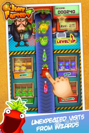 一个休闲益智手游,玩家需要在流水线上把不同颜色的果汁瓶精准分装到对应颜色的箱子里,通过点击或者拖动就能进行操作。游戏还专门设计了一个大胡子监工,玩家每次装错会有非常夸张地表情,装错3次就会被解雇游戏失败。游戏设计了100多个关卡,还有4种难度,流水线速度会越来越快,果汁颜色和瓶子类型也会逐步增加以提升游戏难度。