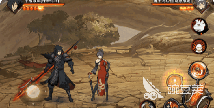 一技能名为「破军」:手持附带火遁查克拉的长戟,向前方直线突刺并钻击,命中后触发灼烧伤害,具备稳定起手与压制能力。