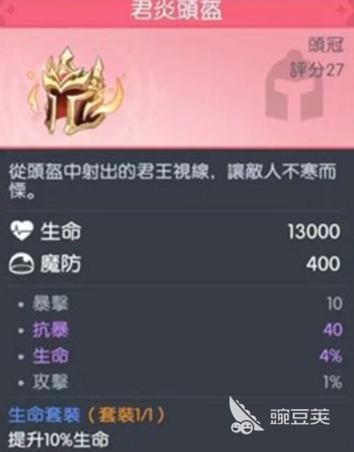 抗爆率是堕落女武神的首要堆叠属性。其天赋机制与技能联动深度绑定抗爆收益——每提升1%抗爆率,不仅直接降低敌方暴击命中概率,还能在触发抗爆时按比例返还生命值,形成稳定的续航循环。因此,在装备选择上,应优先选用具备抗爆加成的部位:头盔、胸甲、护手、腰带、靴子及戒指均需尽可能覆盖抗爆词条;若某部位无高抗爆可选,则再考虑次级替代方案。狂暴套装因其全部件自带抗爆基础属性,成为当前版本最契合该角色的首选套装体系。