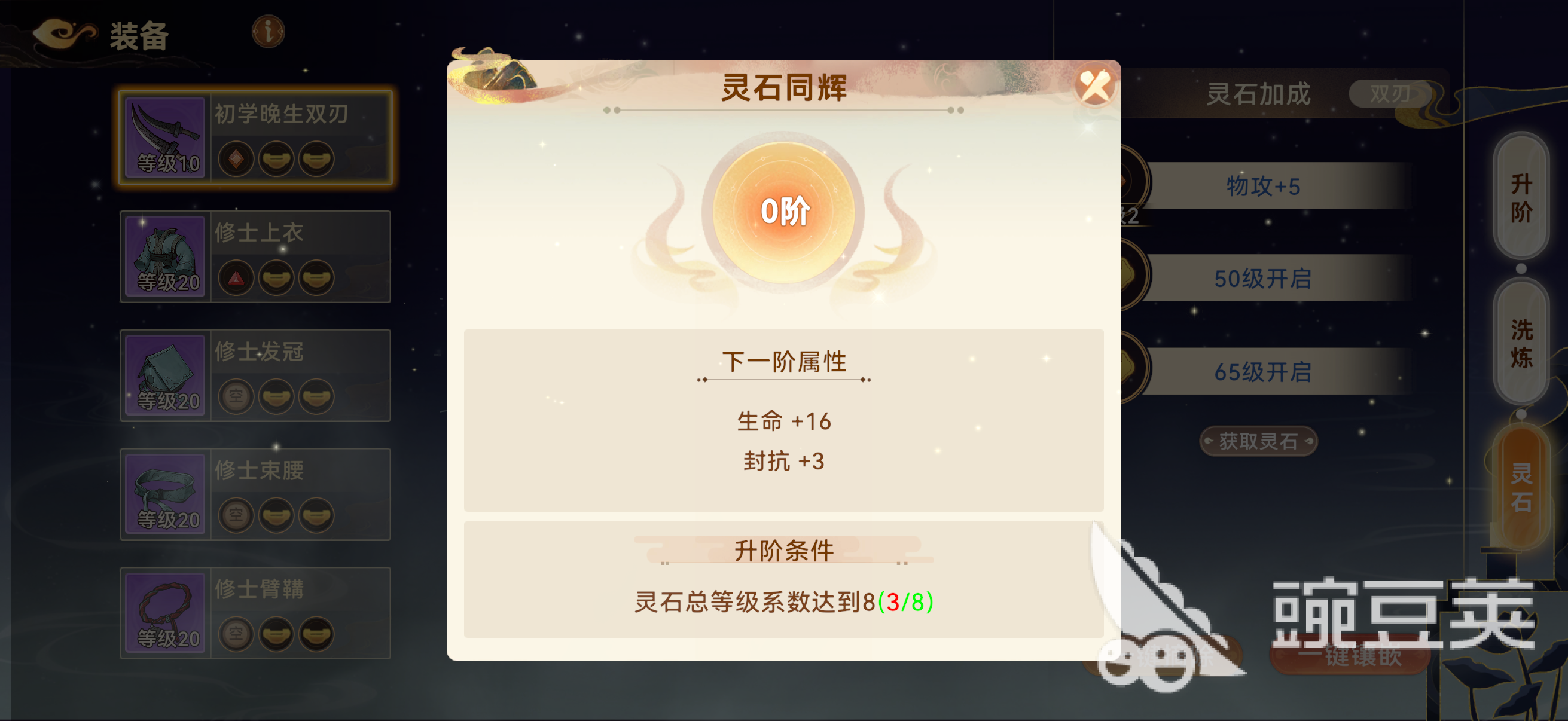 “灵石同辉”并非独立功能,而是灵石装配后的协同效应:当同一武器上镶嵌的灵石满足特定数量与属性组合条件时,将触发额外阶位加成。该阶位随灵石总等级提升而进阶,单颗灵石难以达成升阶门槛,建议在解锁双卡槽后集中资源培养两枚高阶灵石,再补足第三枚以激活满阶效果。