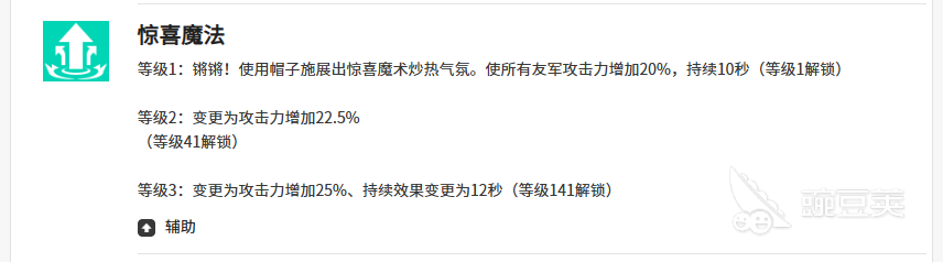 【惊喜魔法】则侧重团队输出强化:施放后立即提升弗里姆自身20%攻击力,并在随后10秒内,持续为半径范围内的所有友方提供20%攻击力加成。该效果对依赖真伤或需快速压低敌方血线的阵容尤为关键。