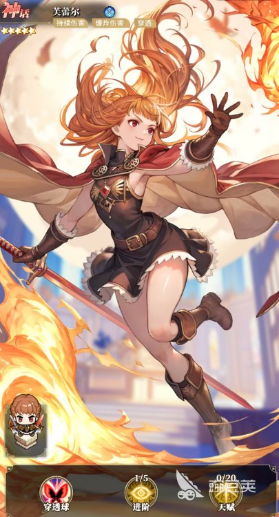 芙蕾尔:主打持续灼烧与范围引爆机制。所有伤害附带穿透属性,并对命中目标施加“点燃”状态。每层点燃在10秒内造成400%攻击力的持续伤害,上限可达40层。五阶突破后,弹球伤害提升60%,发射数量增至2个;点燃状态在目标死亡瞬间触发爆炸,每层点燃额外对周围敌人造成40%攻击力的溅射伤害。终期强化可使点燃类持续伤害总倍率提升至200%。