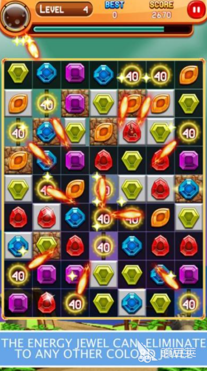 采用相邻交换机制实现基础消除,达成四连可生成闪电宝石,一次性清除整行或整列;L型或T型五连则产出彩虹宝石,点击后消除当前画面中所有同色宝石。当闪电宝石与彩虹宝石组合触发时,将引发全屏清空效果。游戏共设超1000关,划分为6种差异化玩法模式。美术风格为明亮Q版卡通,宝石色彩饱和度高,消除特效层次丰富,搭配舒缓背景音乐,整体体验轻松流畅。
