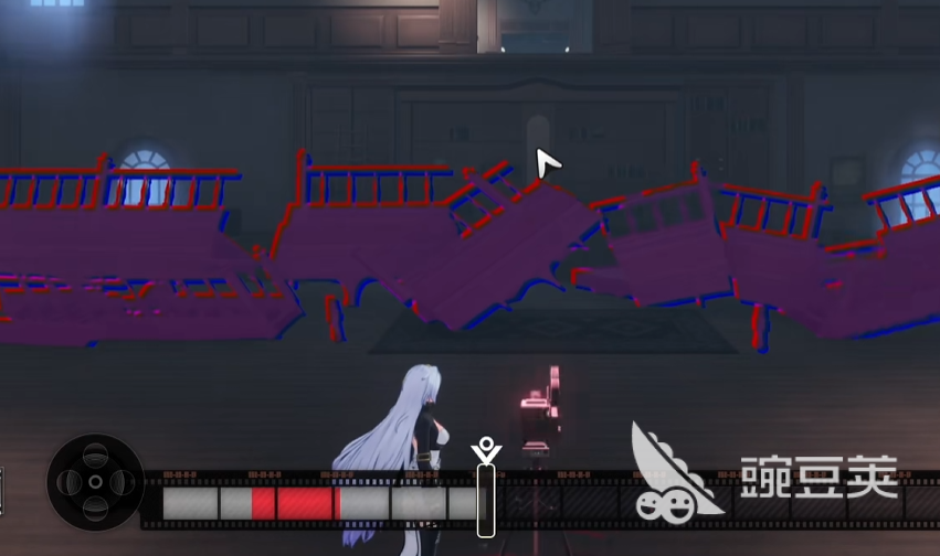 2楼的房间里同样有着一台放映机,但是这里你如果选择的是播放影片这个选项的话,是不会发生任何变化的,需要点击关闭按钮才行,此时你面前的大门就会打开。进入这个房间之后,出现在你面前的仍然是一台放映机,再次与他对话,召唤出坍塌的楼梯,然后通过调整放映机的方式再次进行恢复。这里你会发现楼梯是完全无法复原的,只需要把进度条拉到红色的区域就可以上去了。