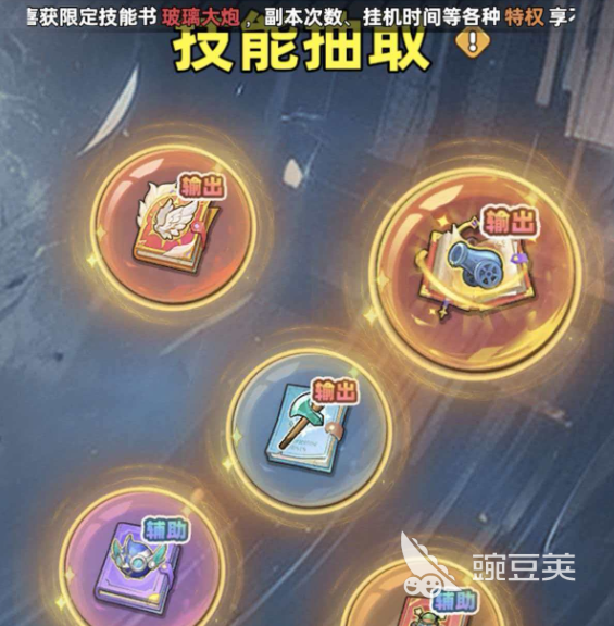技能书也会分成三个不同的种类,刚好可以对应每一个英雄的定位输出。辅助位置应该优先吸血,坦度角色需要注重于防御,输出型英雄就应该配暴击。品质分级更加的直观,金红色神话是天花板,往下就是红色神话级,紫色史诗级,还有橙色传说级。品质越高,那就意味着技能效果属性更加的离谱,选对类型,然后拼一个品质,才能不浪费资源。想要迅速的解锁技能书,两条路走稳就可以事半功倍,核心的途径就是技能召唤券抽取。