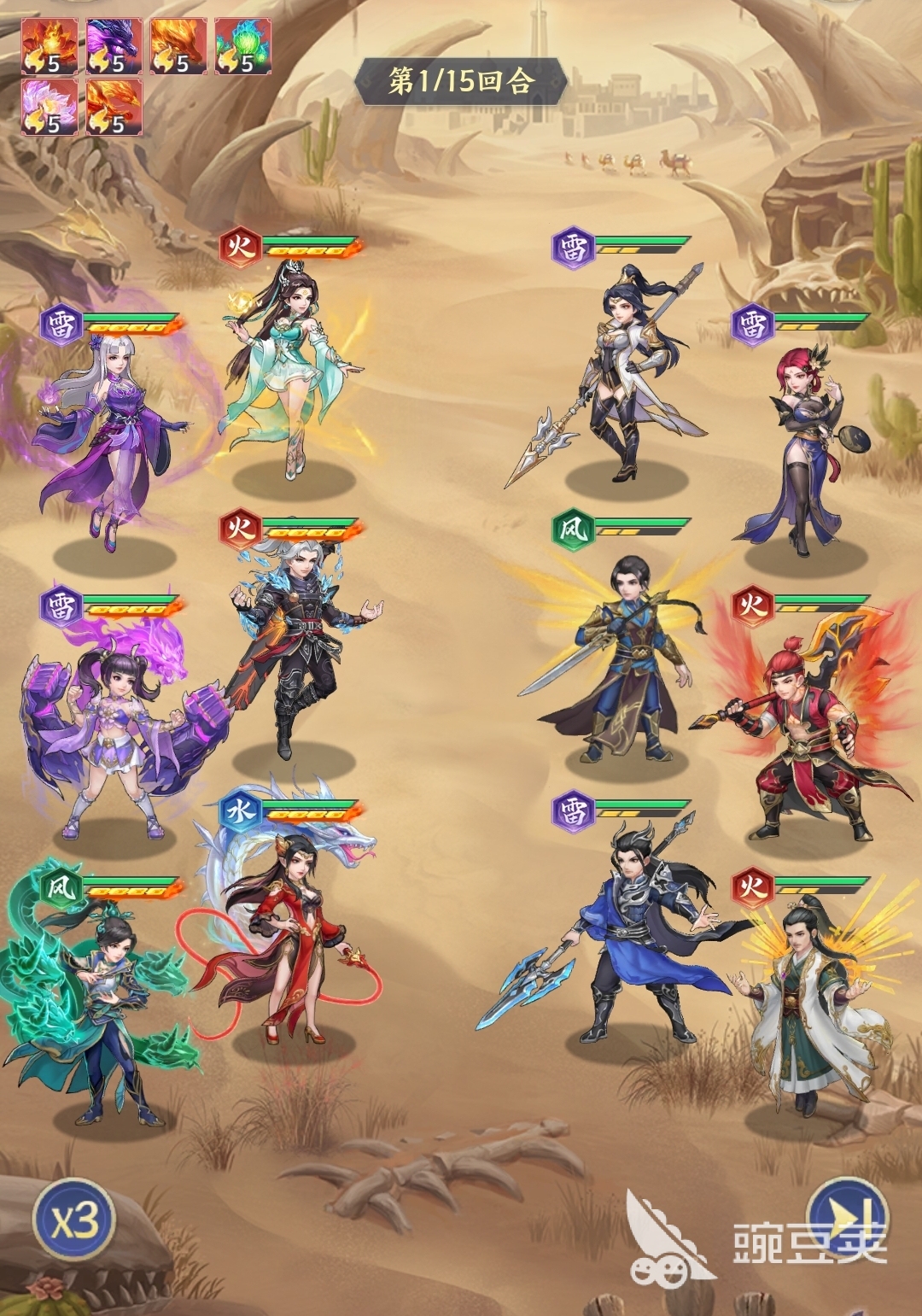 斗破苍穹中有不少好用的击杀追击角色,比如美杜莎、云韵等,所以也可将他们组建成残血收割队来使用。搭配时玩家可选美杜莎、海波东、云山、云韵、熊战和苏千的组合,由海波东先手进攻,利用自己的高群上压低对手的血量,方便2、3号位的云韵和美杜莎来进行收割,并将高血量敌人交给4号位的云山进行兜底。同时,熊战和苏千都有较强的回血能力,可力保队友不会被击败,且熊战还能为队伍补足伤害。