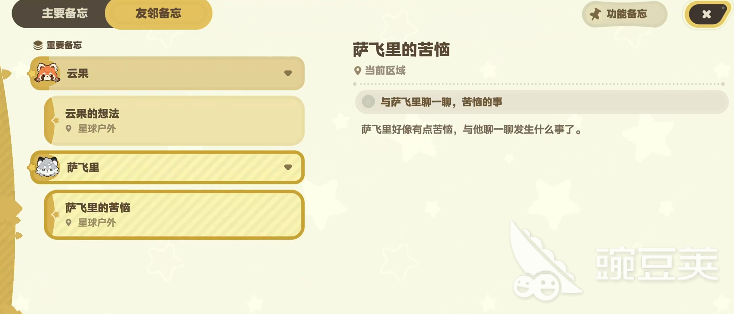 其实针对备忘录的核心用途就是玩家在体验星布谷地游戏的时候会涉及到一些实用的信息。玩家直接把这些使用的信息记录在备忘录当中,比如他可以把它当成探险攻略的记录本,像玩家在野外探险的时候采集到了珍贵的材料。这时候可以尝试记录生长的位置,刷新的时间以及下次想要再次收集的时候,玩家应该到哪里去收集。当然玩家在体验游戏的时候,一旦碰到了比较难打的大Boss,这时候玩家就直接把他的弱点攻击的规律给写下来。