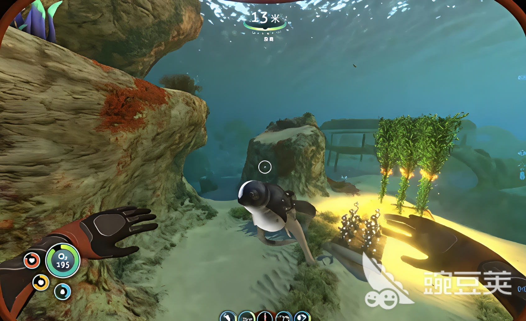 玩家在初步阶段可以到逃生舱周围为较浅的地区探索,因为海水较浅的地方资源较为丰富,比如小鱼和海藻以及盐块都可以在这里获得,特点就是特别方便找到食物以及生命需用的水,玩家可以向初始补给点靠近,探索小区域的半径,和其他地区相比较为安全,威胁生命的攻击性生物也比较少,但是地形较为不平,矿物资源不是很多,到游戏后期的时候,玩家可以外出进入深海地区,采取更多的矿物资源,因为这些资源是建造基地和远程控制台的重要材料。