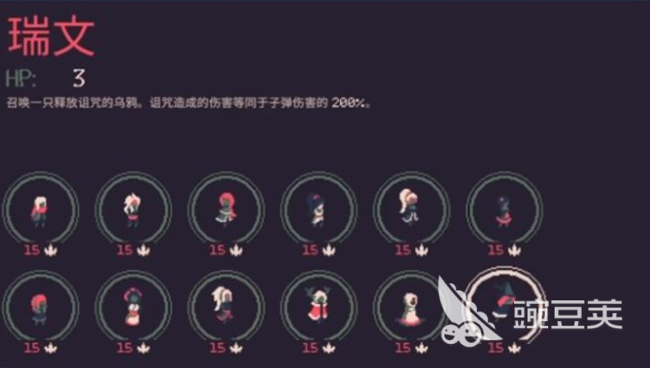 玩家如果想要获得魔法水枪,目的非常的明确,只需要在黑暗森林当中撑够20分钟,并且成功的打败最终守关的boss就能够成功的解锁,不得不说这个情况是非常简单的,但是玩家先要选择合适的角色,在这里推荐高输出或者是群伤害型的角色,瑞文就比较合适,因为它的基础HP是三,核心技能是召唤一只释放诅咒的乌鸦,要说乌鸦的诅咒能够造成等同于子弹伤害20%的额外伤害,所以说他的出现不管是单点输出还是群体清场,所形成的作用都比较大。
