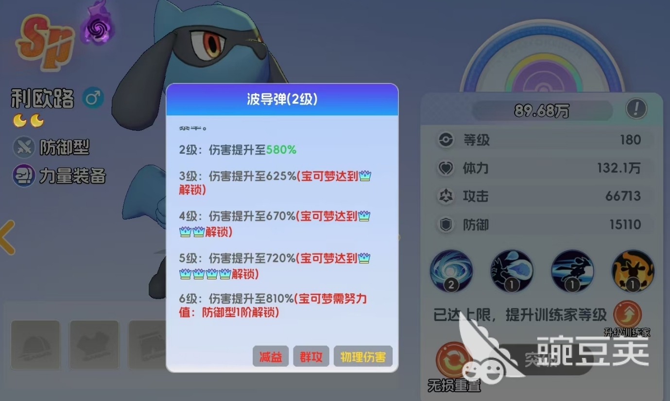 要注意的是,初始品阶为SR的宝可梦最高只能升至月亮1阶,只有SSR宝可梦和SP宝可梦可升至满阶,因此玩家在养成时最好重点培养后两种宝可梦,它们的养成上限更高。升阶后的宝可梦不光属性会得到的提升,还能在完成相应节点的进阶后,解锁自己的全新形态,技能的等级也会随着升阶而升级,所以升阶是提高宝可梦练度非常关键的养成环节。