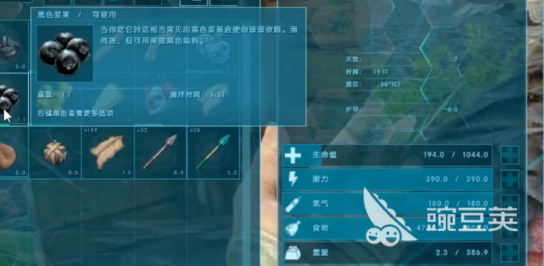 镰刀龙是草食性的,需要喂紫色浆果和黑色浆果。紫色浆果可以增加驯服进度,黑色浆果能大幅度恢复它的眩晕值。镰刀龙的眩晕值掉得比较快,所以要时不时看一下,快掉下来了就赶紧喂几把黑色浆果。