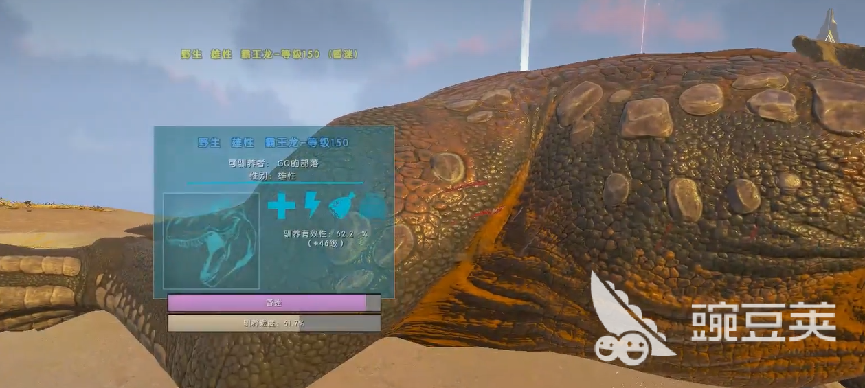 等到金色的进度条涨满,就说明驯服成功了。这时候恐龙就正式成为你的伙伴,可以给它起个名字,以后带着它一起冒险。驯服成功的恐龙用处非常大。可以当做坐骑骑着到处跑,移动速度比走路快多了。而且恐龙还能帮忙运输物资,相当于一个移动的大背包。有些战斗力强的恐龙,还能在打架的时候帮你一起战斗。