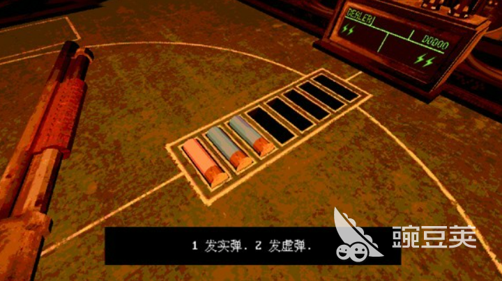 准备阶段结束后,所有玩家会被带到一个比较压抑的场景里面。游戏开始前会有个免责声明,需要玩家签上自己的昵称才能继续。签完名之后正式进入对局,这时候恶魔会出现在对面,桌子中间放着那把关键的散弹枪。每一局开始的时候,屏幕上会清楚显示这一轮枪里装了多少发实弹,多少发空包弹。比如第一回合可能是两发空包弹加一发实弹,后面的回合实弹数量会逐渐增加,难度也就越来越高了。