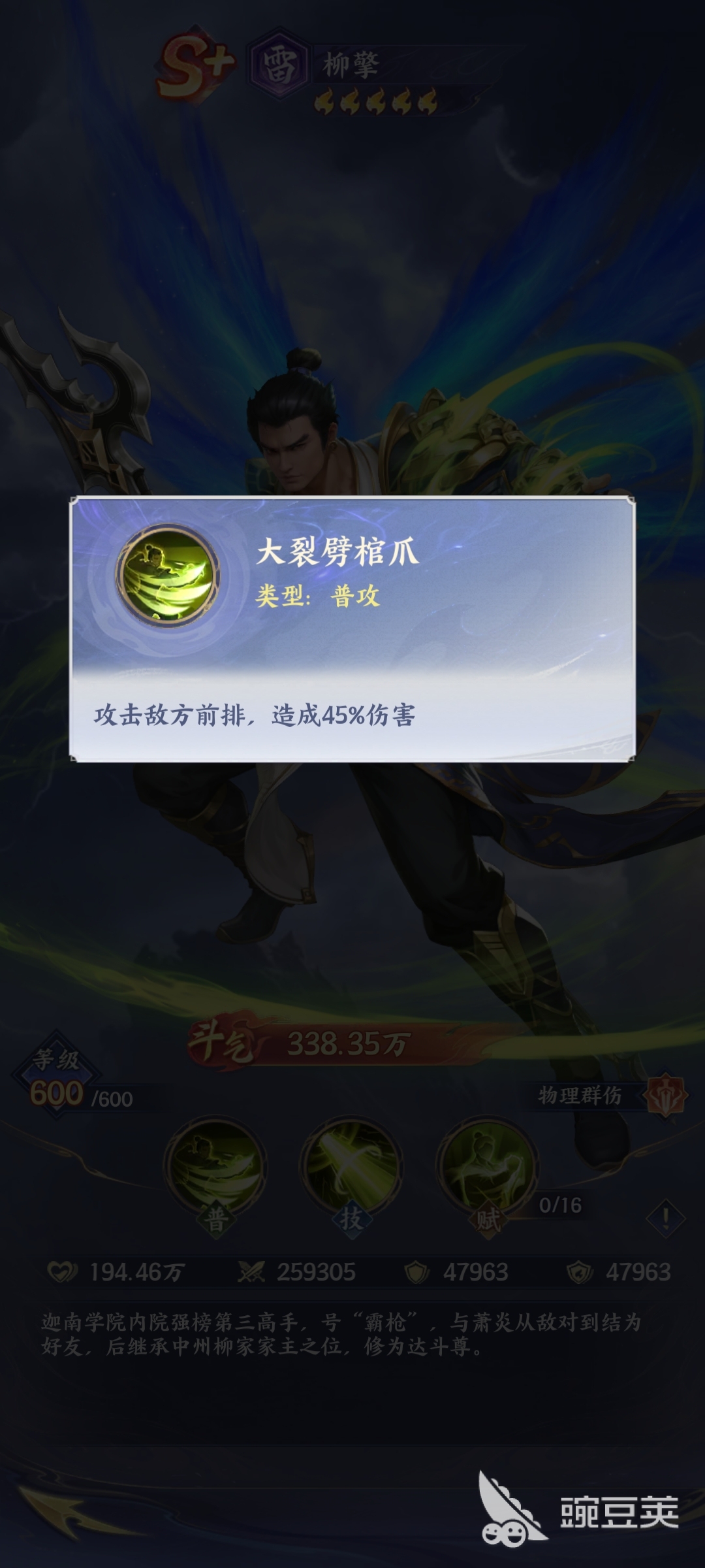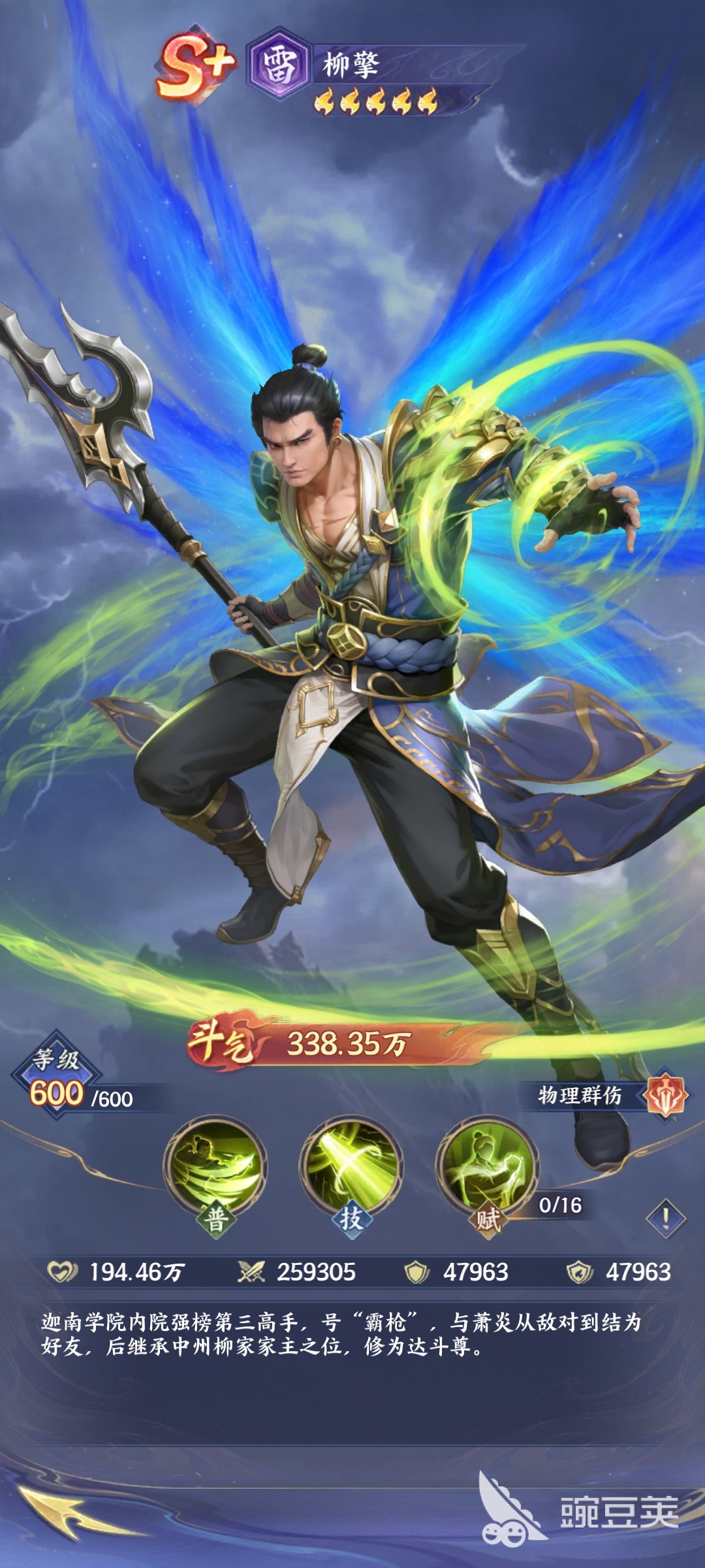 柳擎身上穿的是蓝金色的服饰,搭配着绿色的斗笠,背后还有蓝色的斗气羽翼,他其实整体的实力比较强悍,在战斗的过程当中,玩家其实也需要充分的去了解它的特征,比如它充满了毁灭性的力量,一旦施展普通攻击技能之后,它能够有效地攻击敌人的前排,在这样的情况下,能够让敌人形成较高的物理伤害。虽然他的普通攻击技能看上去比较简单,但是却非常有力量。