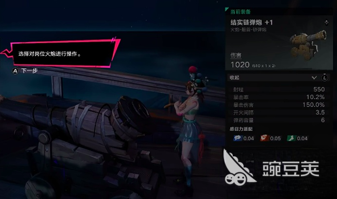 玩家在正式开启海战前,需要先选择合适的角色,并将其放到对应的大炮控制位置上,目前与大炮高适配的的是茉莉,这个角色有着较强的输出技能,而在岗位上可带来额外的输出加成,在甲板上可以同时放置四个这样的火炮,还可以通过加装武器装备实现更突出的战场表现能力,玩家利用结实链弹炮完成首次海战后,可以解锁更多常规化的武器装备。