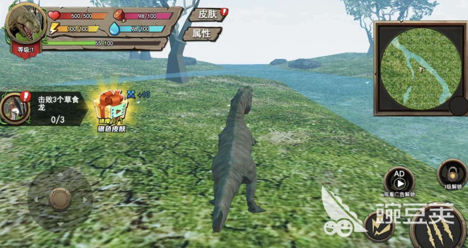 本作主打“恐龙视角生存模拟”,玩家将化身暴龙、三角龙等史前巨兽,在高度还原的侏罗纪生态环境中完成觅食、成长与领地争夺。饥饿值随时间动态衰减,需持续捕猎或采集维持生命;通过吞噬同类或特定生物可激活DNA进化系统,逐步强化体型、速度与攻击能力,实现从幼体到顶级掠食者的完整成长路径。