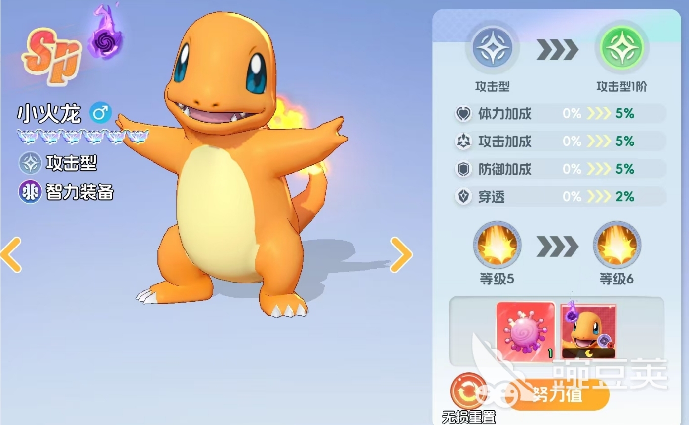 养成层面,超级喷火龙具备天然优势。由于MEGA进化本身已消耗大量资源,初始练度较高,后续只需持续升阶至当前版本品阶上限即可完成基础成型。进阶强化路径包括:在锻炼系统中使用增强剂提升力量(影响体力)、技巧(影响攻速)、耐力(影响防御)三项基础属性;在努力值系统中消耗宝可病毒定向强化对应能力;同时不可忽略招式精通升级、等级提升及MEGA进化专属升阶等常规成长模块。