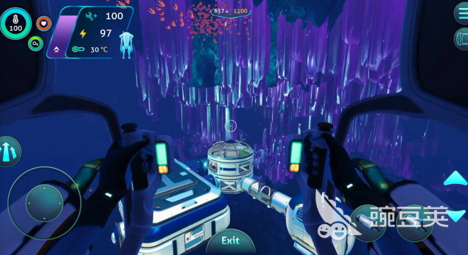 抵达水面后,玩家可自由下潜。冰层以下水域不受地表低温影响,环境温度稳定在4℃左右,大幅降低体温管理压力。水下区域矿物富集,铅块等基础工业原料分布密集,但受限于初始装备,仅能采集小型矿脉。需特别注意氧气储量——当PDA氧气值降至30%时,界面将出现红色闪烁提示;低于15%时角色开始强制上浮。首个吊舱即为初始基地,内置工作台与满额氧气补给站,是解锁后续制作系统与剧情推进的核心枢纽。
