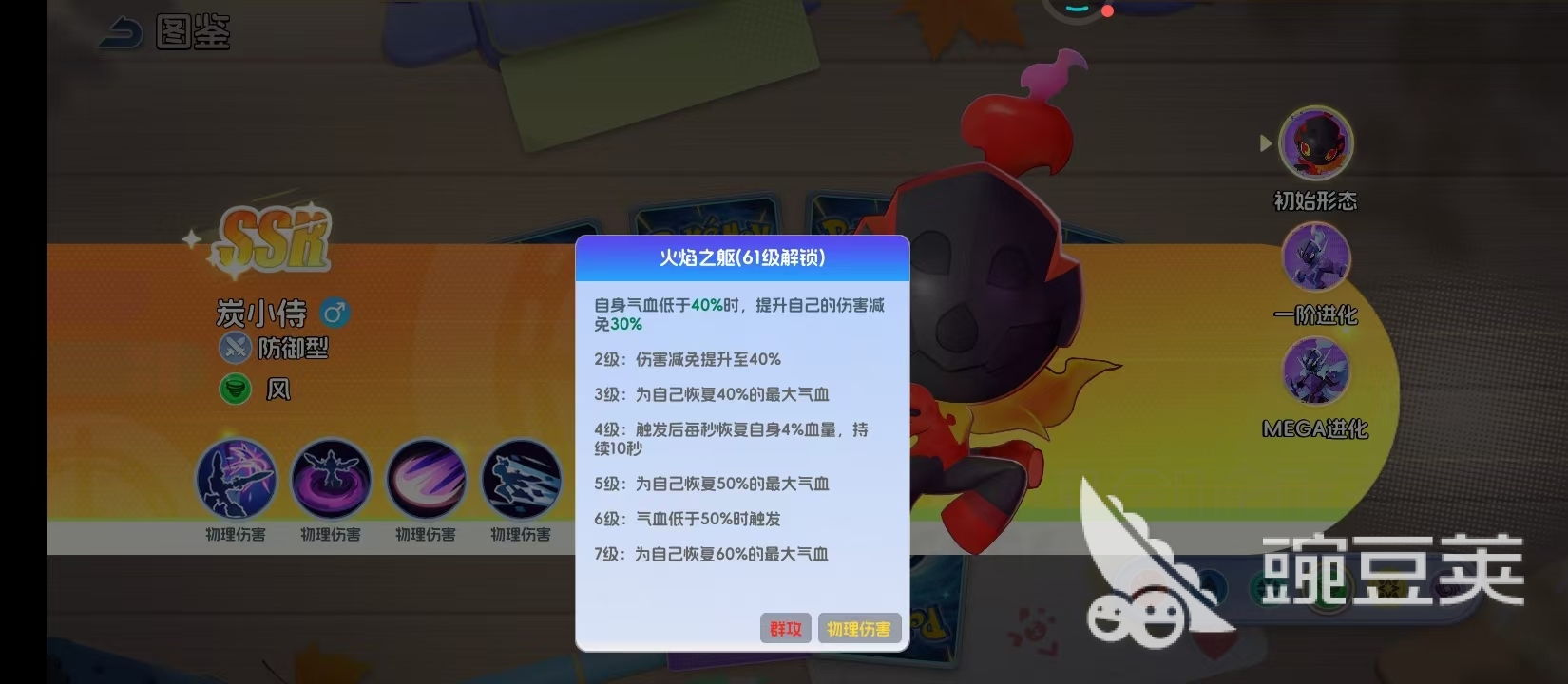 火焰之躯在61级就可以解锁,作为防御型宝可梦的灵魂所在,当自身气血低于40%时,就会触发最高40%的伤害减免。同时还能给自己恢复最高60%的最大气血,在触发之后每秒就会恢复4%的血量,会有持续10秒的优势,这一个被动技能让他在绝境中就会具备逆转战局的资本。